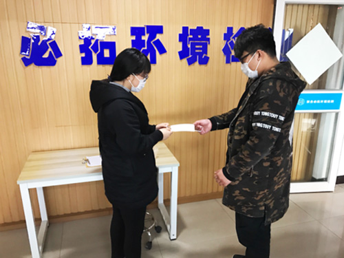 2020年2月12日早8點(diǎn),致合必拓綜合部的工作人員已全部到崗,并在公司大門處設(shè)置疫情防控檢查站。檢查站配備酒精、紅外線體溫計(jì)以及公司統(tǒng)一購(gòu)置外科防護(hù)口罩等防疫用品,工作人員堅(jiān)持信息登記制度,對(duì)進(jìn)出人員、消殺防疫情況進(jìn)行嚴(yán)格登記。所有員工也深知防疫工作的重要性,積極有序地配合工作人員進(jìn)行體溫檢測(cè)以及噴灑酒精消毒等防疫工作。