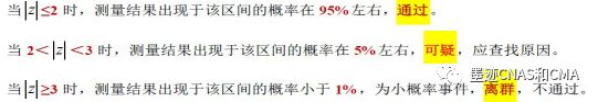 滿意的En值應(yīng)在+1和-1之間。在判據(jù)En中使用了實(shí)驗(yàn)室報(bào)告的測量不確定度,如果En的絕對值大于1,則表明實(shí)驗(yàn)室的不確定度大于他們被認(rèn)可的不確定度Uu ,則實(shí)驗(yàn)室就應(yīng)該進(jìn)行檢查分析,立即采取糾正措施。