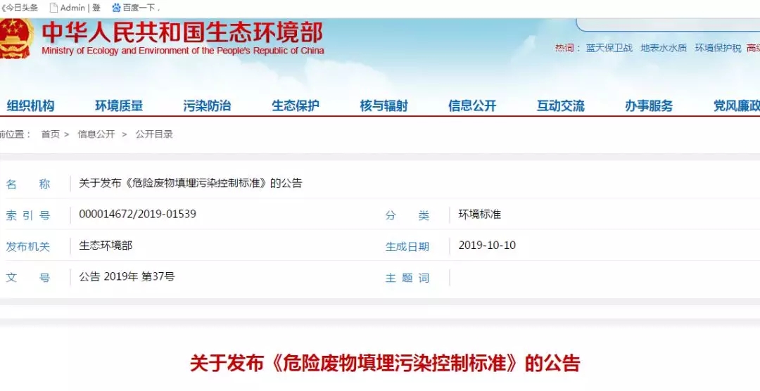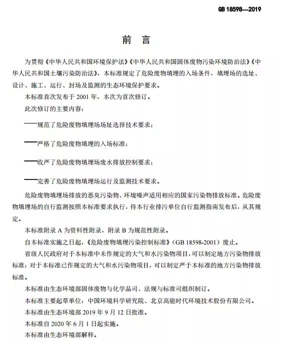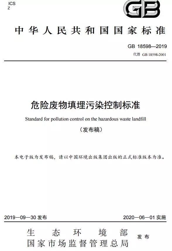 生態(tài)環(huán)境部最新發(fā)布!《危險(xiǎn)廢物填埋污染控制標(biāo)準(zhǔn)》自2020年6月1日實(shí)施