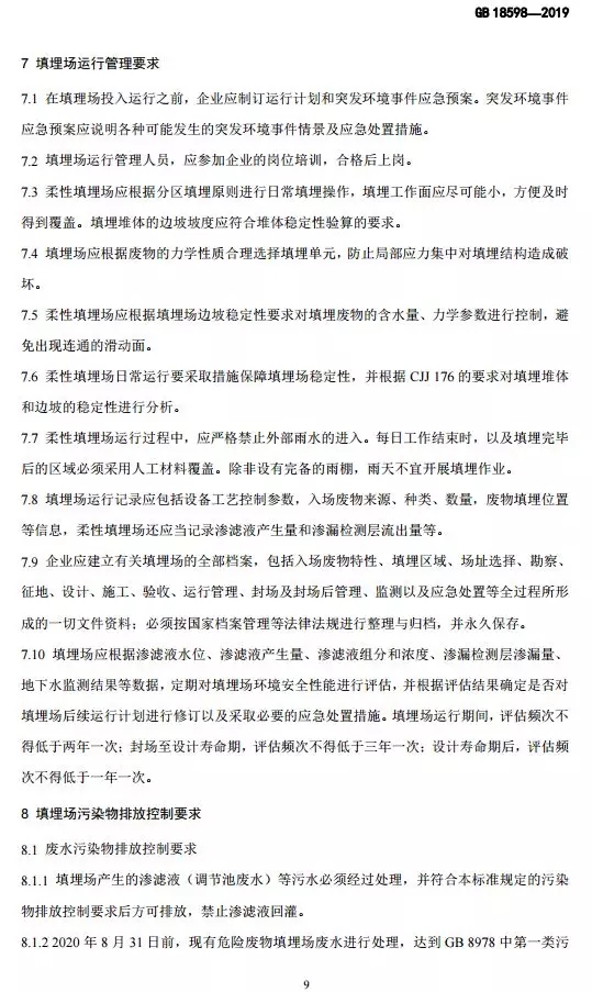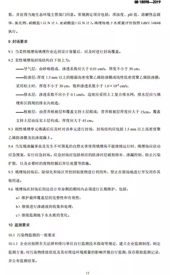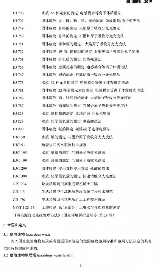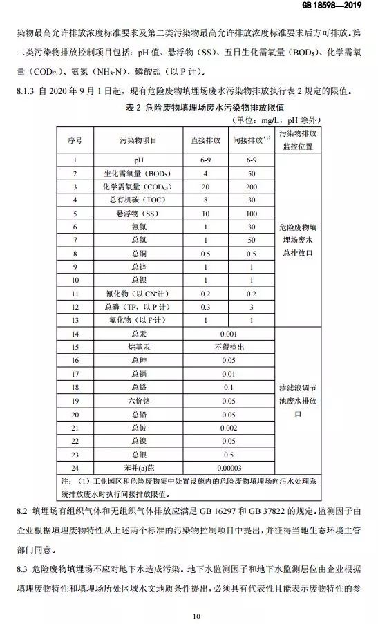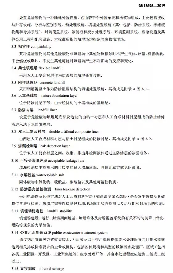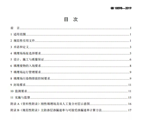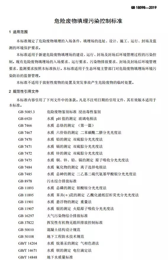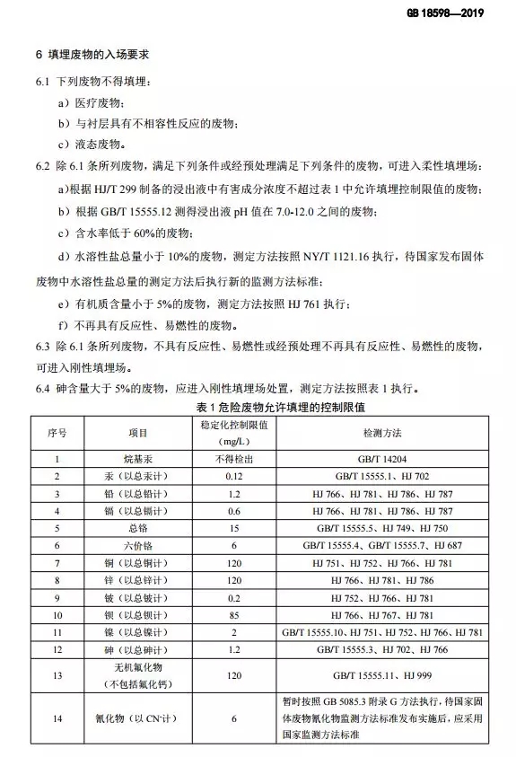 危險(xiǎn)廢物填埋污染控制標(biāo)準(zhǔn)(GB 18598-2019)